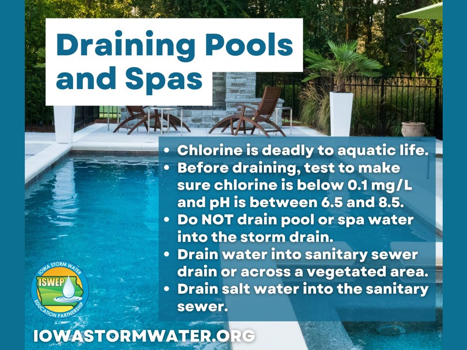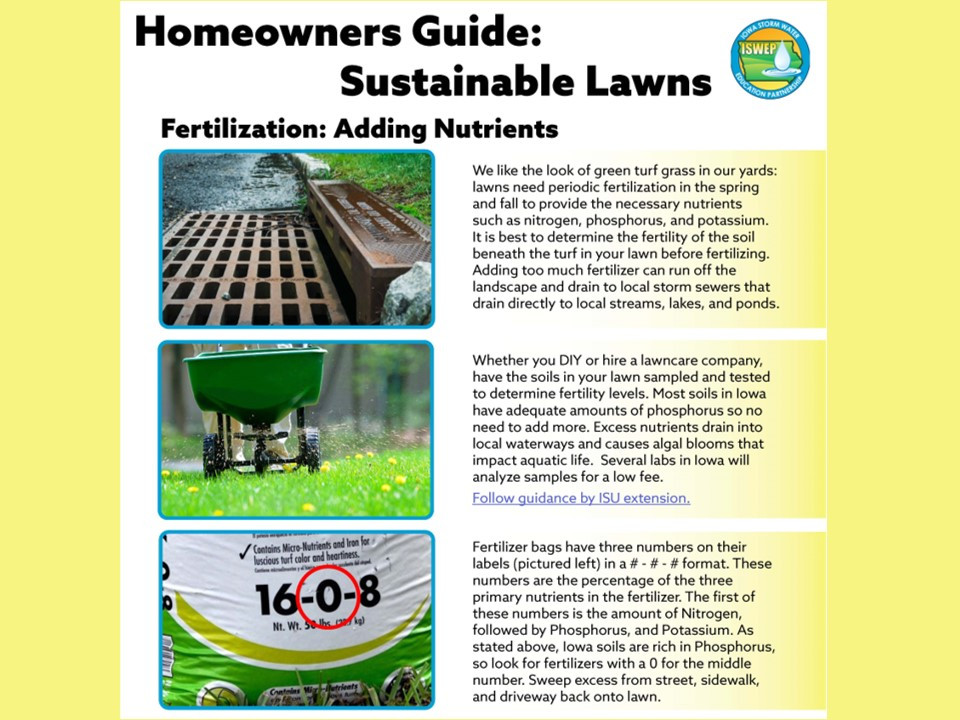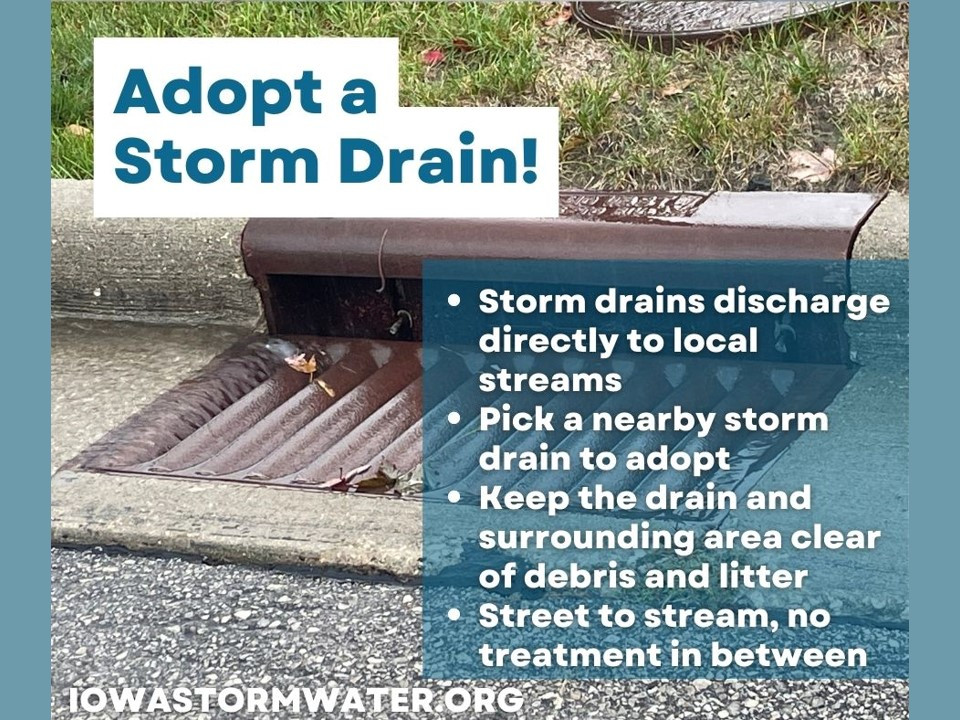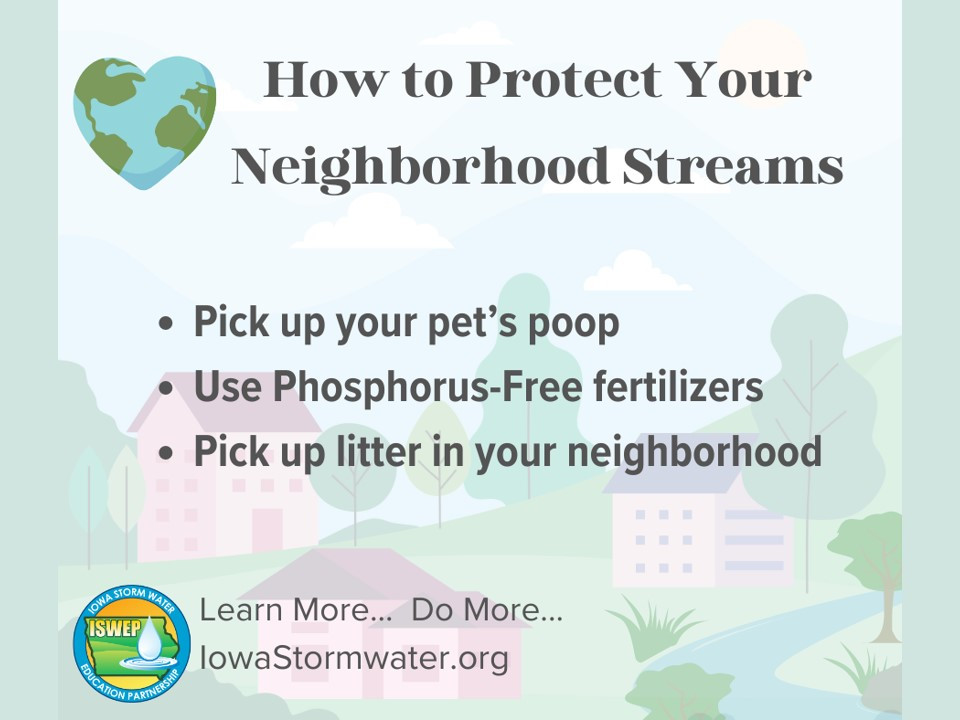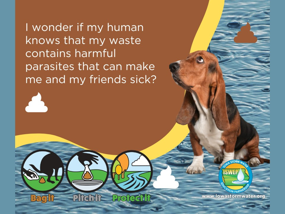 Pet waste washes into our storm drains and pollutes our lakes. Please pick up after your pet at home and in the parks. The City provides pet waste stations in all our parks, and we encourage you to use them. Protect water quality by learning more and doing more at www.iowastormwater.org