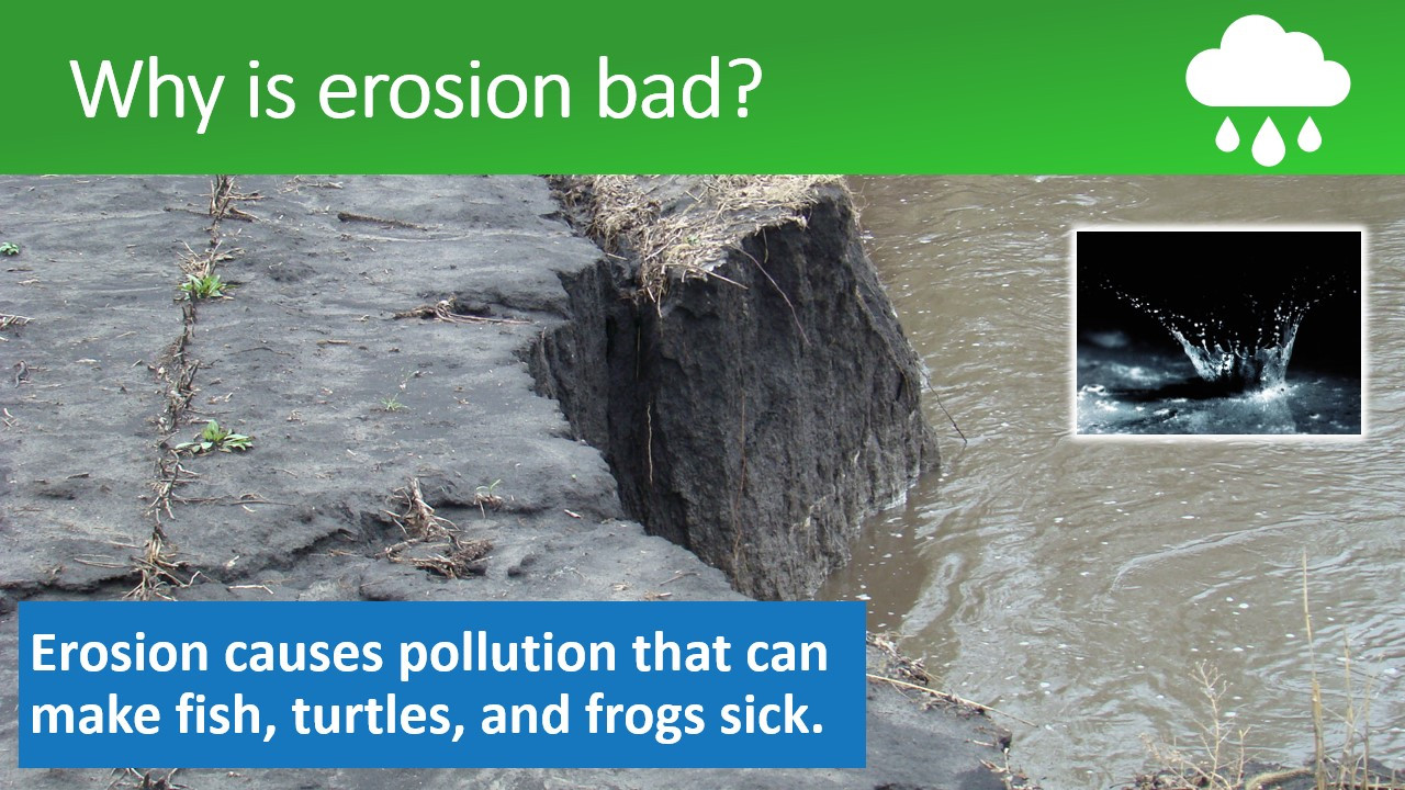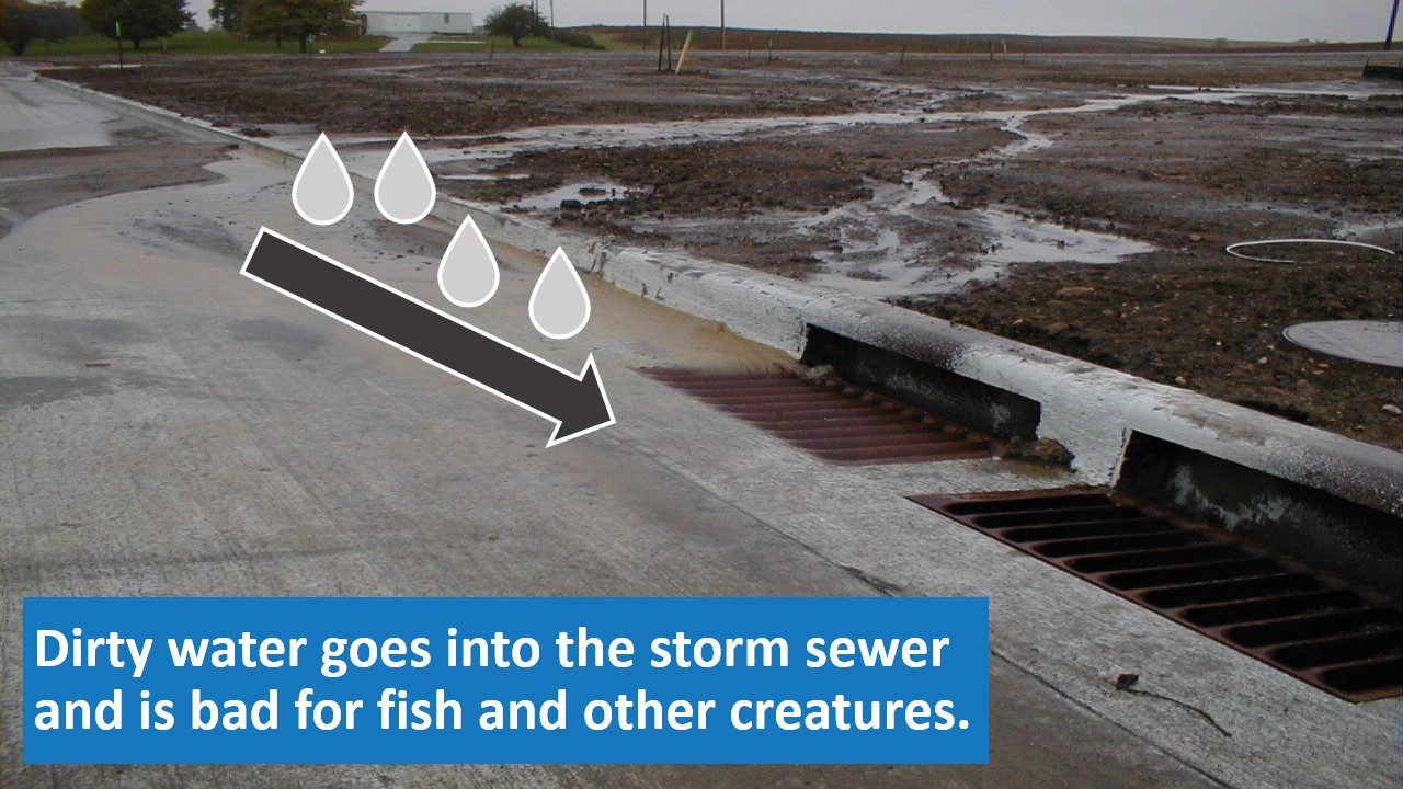 Storm water is water from rain or melting snow. It flows from rooftops, over paved streets, sidewalks and parking lots, across bare soil, and through lawns and storm drains. As it flows, runoff collects and transports soil, pet waste, salt, pesticides, fertilizer, oil and grease, litter and other pollutants. This water drains directly into our lake. Polluted storm water runoff can have many adverse effects on plants, fish, animals, and people.